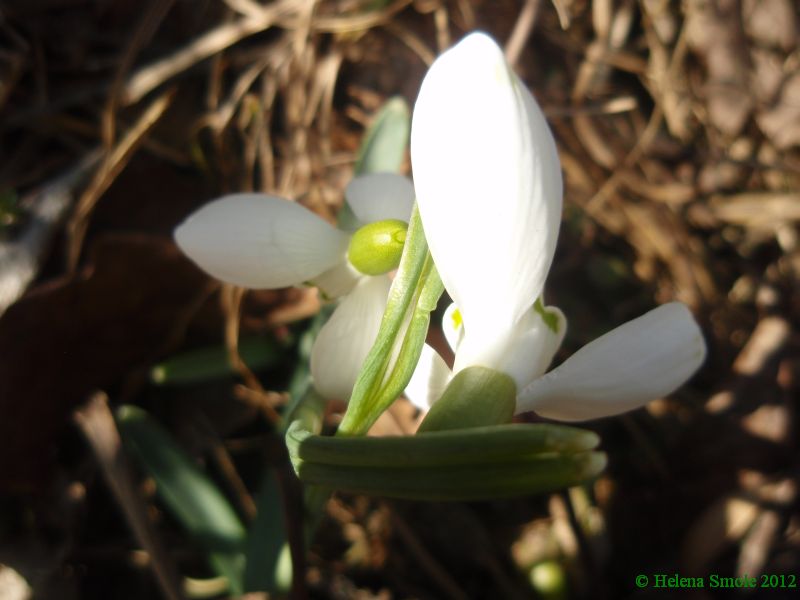 Two snowdrops hugging.